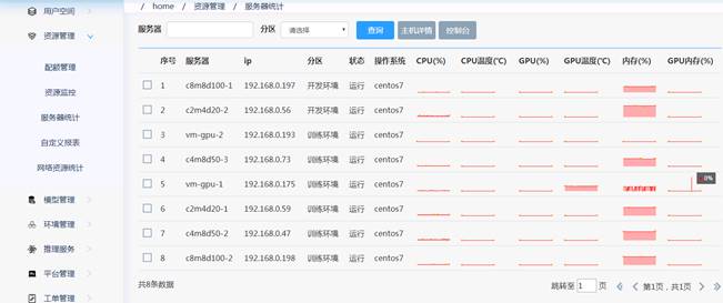 系统提供完备的资源管理平台,对所有计算资源进行集中管理,通过该平台,可以实现对各类资源的状态查询以及相关维护操作。