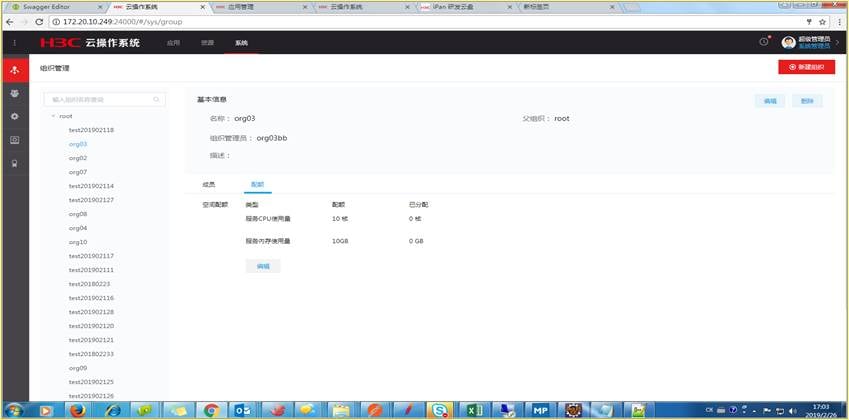 租户管理员负责维护租户云资源,租户管理员可以对组织内云主机、云防火墙、云硬盘、云防火墙、云负载均衡、云数据库等进行管理。