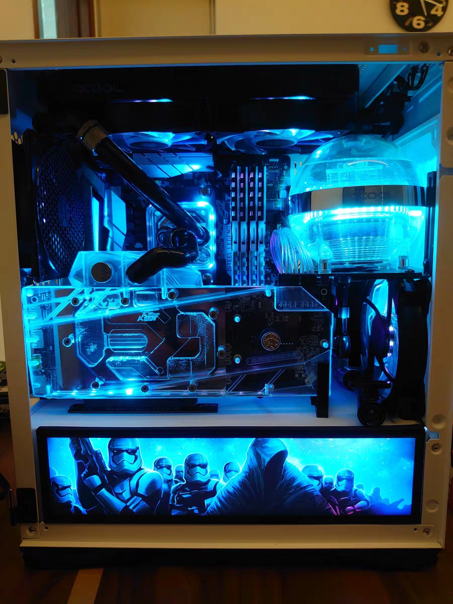 机箱 选择支持大板的侧透机箱,根据风扇位购买同款水冷数量的风扇