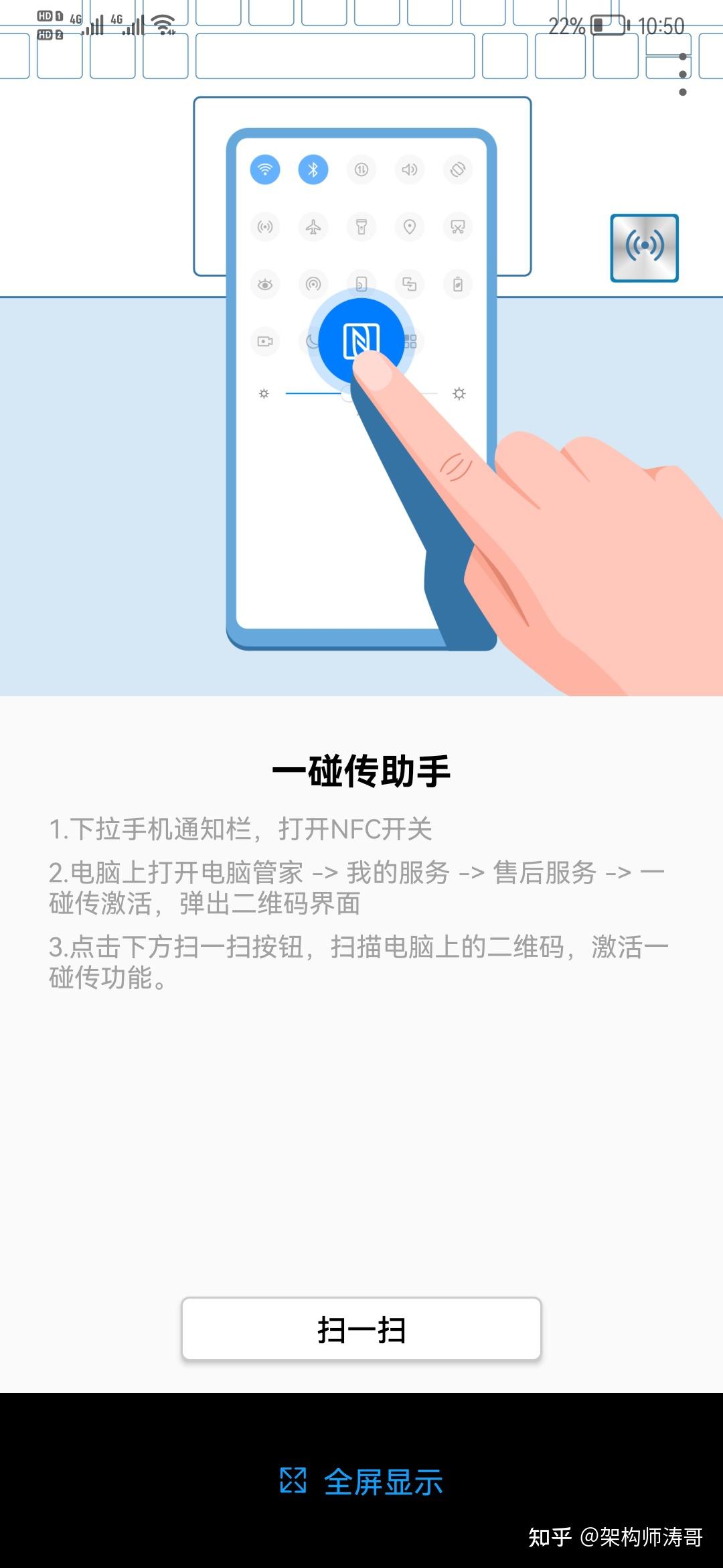 这时候,会提示:请用手机 NFC 模块,触碰电脑上的 Huawei Share 标签