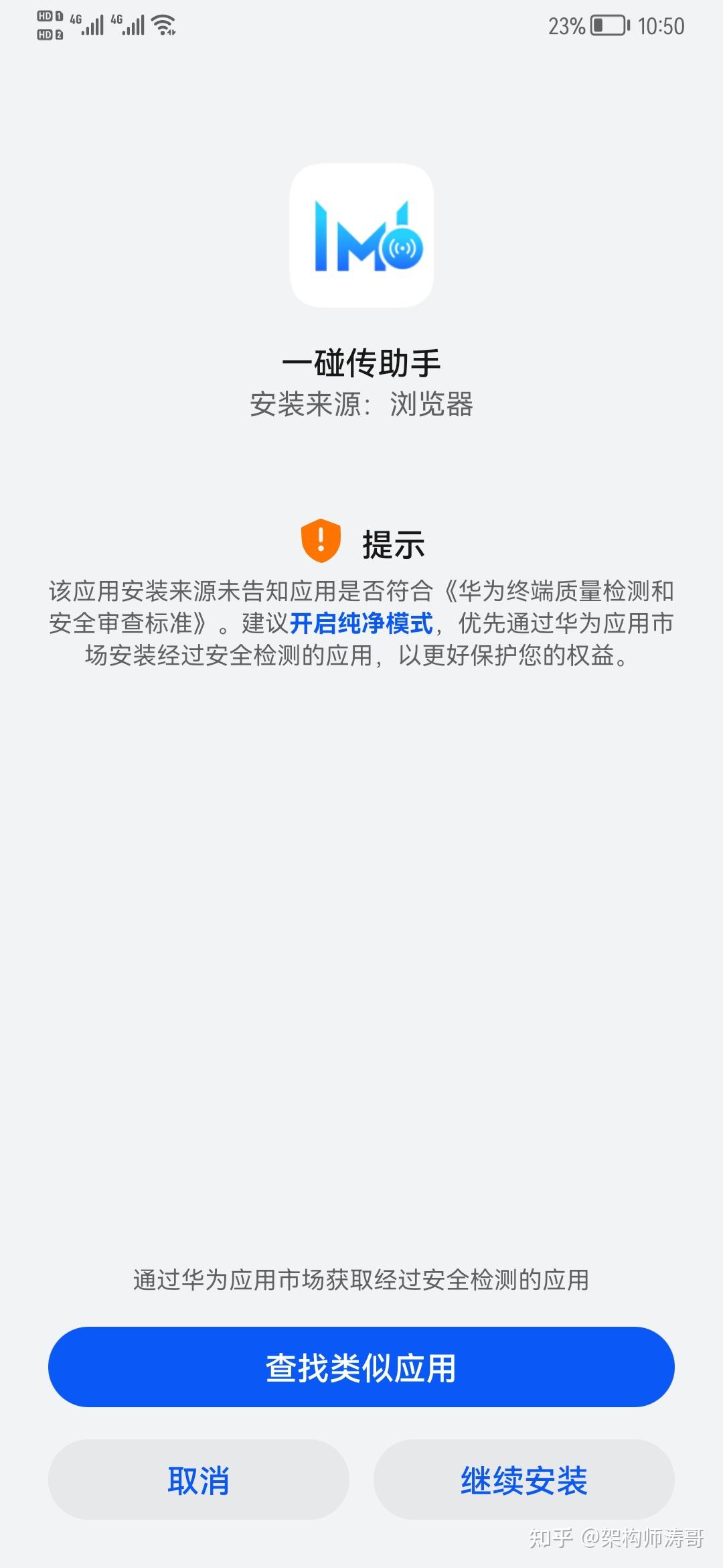 下载 华为一碰传助手 v1.0.4.0.apk ,然后安装到手机上。