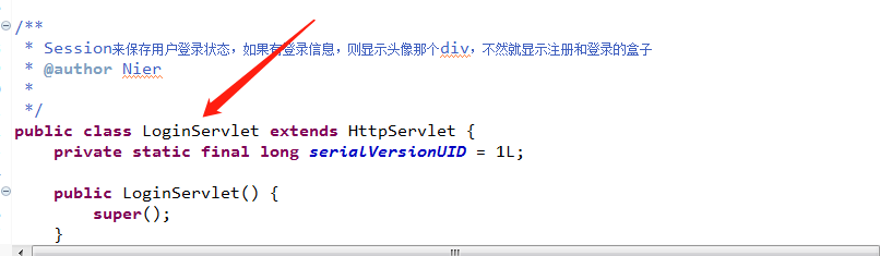有了会话机制,登录状态就好明白了,我们假设浏览器第一次请求服务器需要输入用户名与密码验证身份,服务器拿到用户名密码去数据库比对,正确的话说明当前持有这个会话的用户是合法用户,应该将这个会话标记为“已授权”或者“已登录”等等之类的状态,既然是会话的状态,自然要保存在会话对象中,tomcat在会话对象中设置登录状态如下