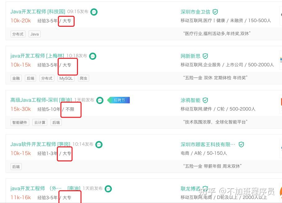 记得有一次面试了一个中专毕业的人,地点深圳,也是自学的java,可以说是全栈了吧,技术很好,可差点就是因为学历被HR卡在了那里,但是在我看来,对于一个创业公司还是以技术为主,所以我就把他招进来了,当然薪资相对于一些本科毕业的人来说,还是少了点。