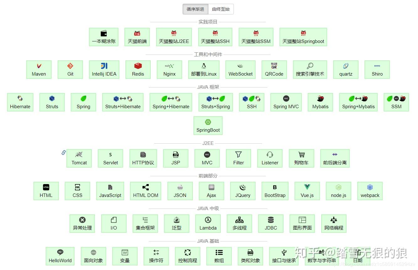 一本糊涂账 →天猫前端 →天猫整站J2EE →天猫整站SSH →天猫整站SSM →天猫整站springboot →趋势投资springcloud