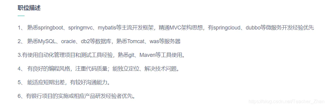 大家看了上面三家的招聘要求是否发现,目前作为初级Java工程师的要求都是差不多的,主要框架就是SpringMVC、Mybatis、SpringBoot、SpringCloud为主。而数据库是MySQL和Oracle,一般中小型公司是用MySQL,而稍微规模稍微大一点的公司则是Oracle为主,以及Web相关的基础内容和一些如git、Maven、SVN工具的使用。
