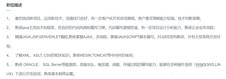 以上这些都是中小型软件企业的入职基本要求,如果你能够达到这个水平,找到一份Java工作应该是不难的。