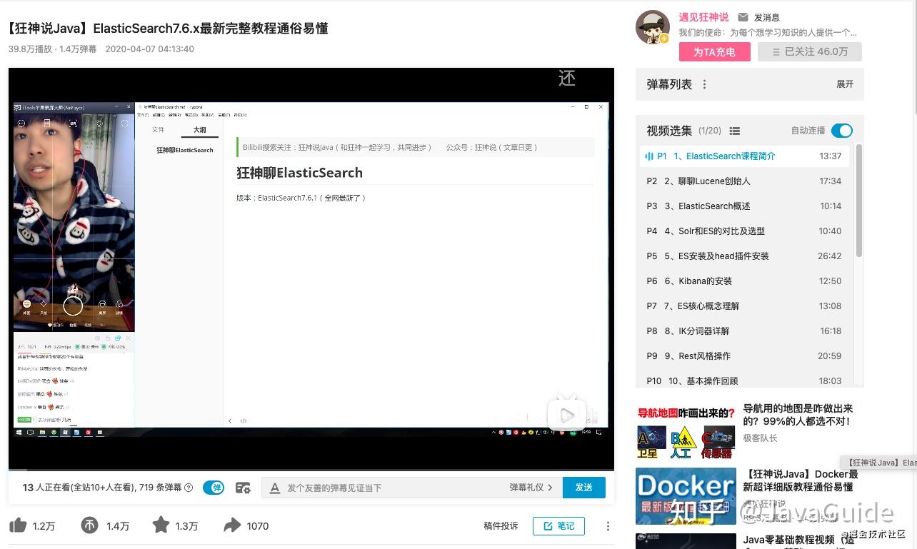 另外,《狂神老兄的 Elasticsearch 系列教程》也是非常赞!语速很快,讲的很清晰,废话很少,基本是不需要开倍速看那种。