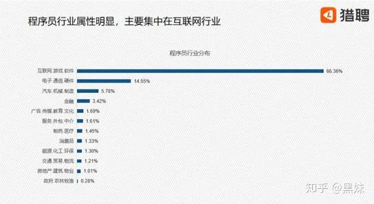 4.程序员行业属性明显,超65%集中在互联网行业;