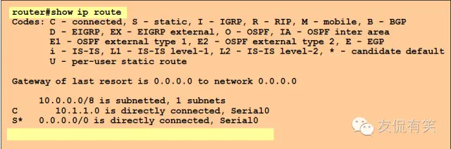 我们可以在路由器上show ip route 查看当前的路由表