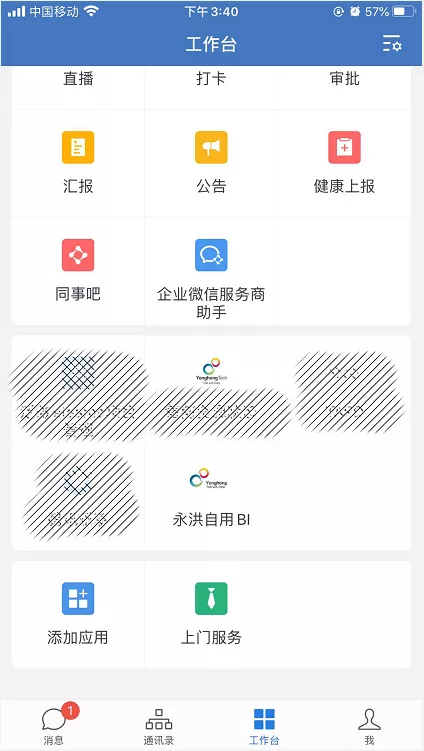 通过以上配置后,将Yonghong Z-Mobile集成进企业微信效果如下: