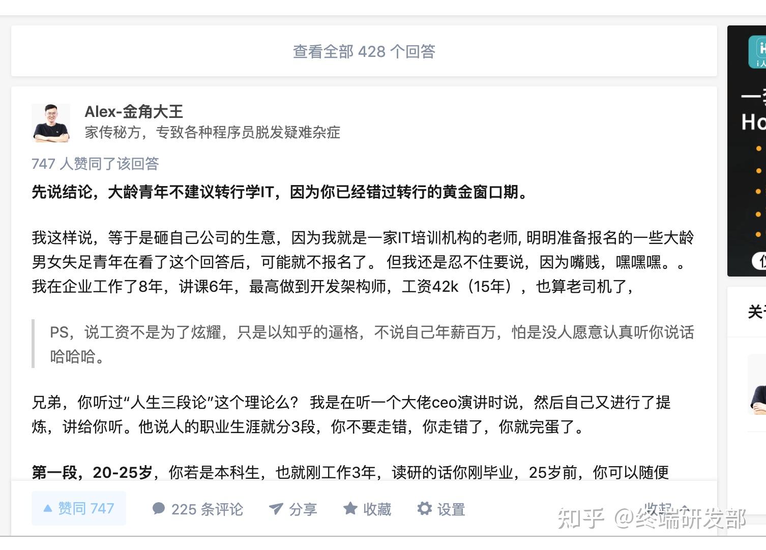 我这样说,等于是砸自己公司的生意,因为我就是一家IT培训机构的老师, 明明准备报名的一些大龄男女失足青年在看了这个回答后,可能就不报名了。 但我还是忍不住要说,因为嘴贱,嘿嘿嘿。。我在企业工作了8年,讲课6年,最高做到开发架构师,工资42k(15年),也算老司机了,