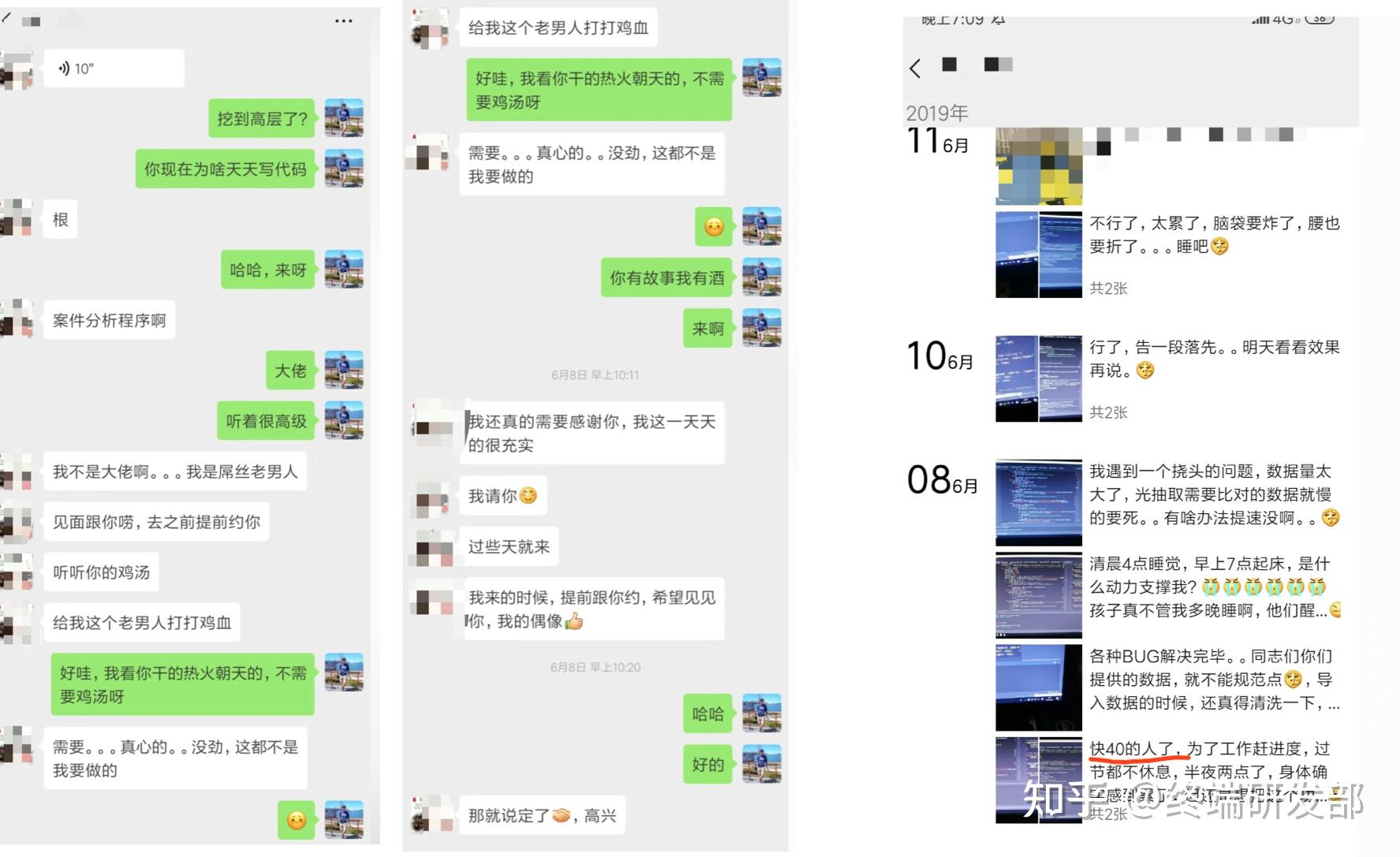最后, 也不要一棒子打死,如果你真心喜欢编程,可以考虑当副业来做,学好了想办法集成到现有的工作中,那你就是复合型人才了,还是很有竞争力的。比如我有个学生,36岁了,做警察的,大学学的计算机,之前家里做房地产相关,家境殷实,12年打老虎期间家里破产了,还欠了2000多万债,到现在都不能做高铁。 沉沦了几年后,人生还得继续呀,找关系当了刑侦警察。闲着没事又把编程捨起来了,看了我各种盗版视频,学好了后,写程序分析银行交易数据,挖出几个诈骗案件,还有一个是国际菠菜洗钱案,据说金额灰常大。前段时间跑到北京来看我,给我炫耀了他写的程序,别说,还挺nb的,各种维度的线索分析,让他给数据可视化了。领导很重视他,因为整个市局就他一个警察能写代码。 给他评了辽宁省省级教官,还受到省厅大佬接见。 天天在朋友圈发写程序到深夜的图,看的出他是真的喜欢