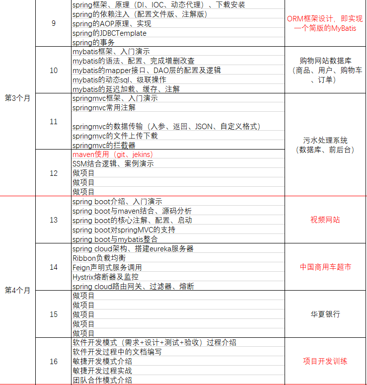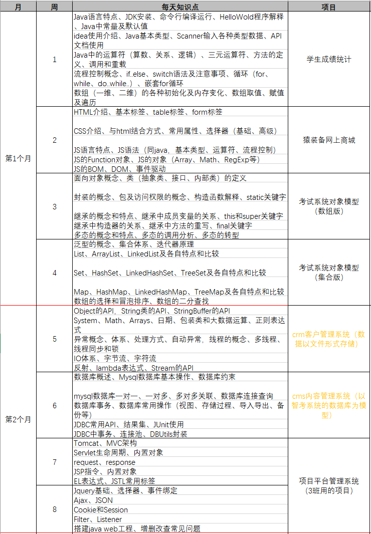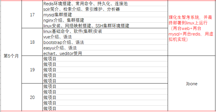 我们按照每天学习进度,定制5-6个月的学习计划,那么我们每天该学些什么呢?以下表格可进行参考