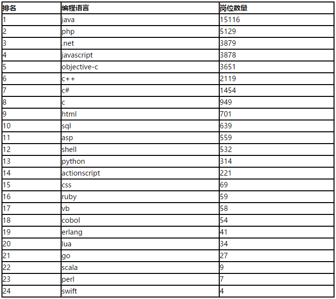 译者注:为了更具说服力,特此补充国内的编程语言岗位情况(数据来源2015年8月 中国版的编程语言排行榜):