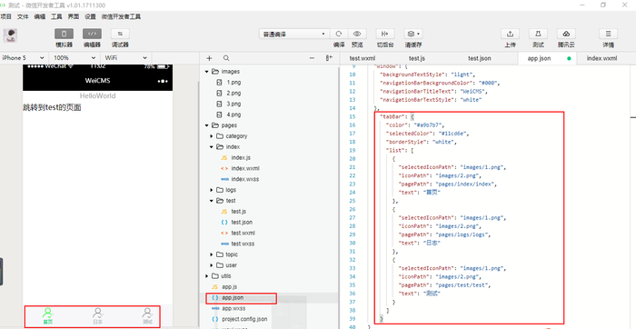 OK,结束,保存 编译 就可以实现小程序的经典的底部导航效果了