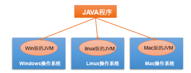 因为有了JVM ,同一个Java 程序在三个不同的操作系统中都可以执行。