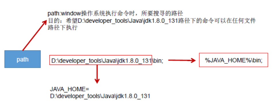 目的是为了在控制台的任何文件路径下,都可以调用jdk指定目录下的所有指令。