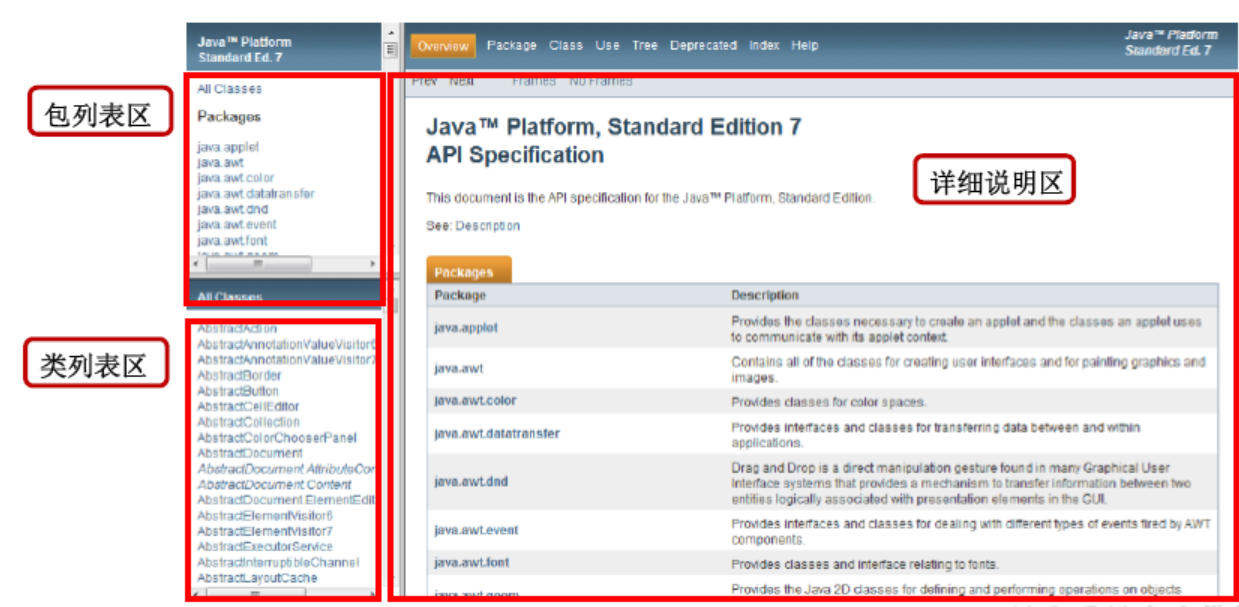 Java 语言提供了大量的基础类,因此Oracle也为这些基础类提供了相应的 API 文档,用于告诉开发者如何使用这些类以及这些类里包含的方法。