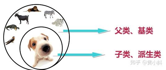 继承是类与类的一种关系,是一种“is a”的关系。比如“狗”继承“动物”,这里动物类是狗类的父类或者基类,狗类是动物类的子类或者派生类。如下图所示: