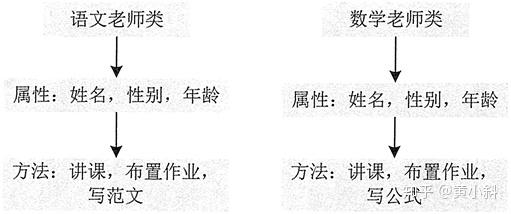 例如定义一个语文老师类和数学老师类,如果不采用继承方式,那么两个类中需要定义的属性和方法如图 1 所示。