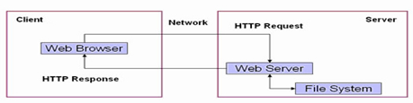 在静态WEB程序中,客户端使用WEB浏览器(IE、FireFox等)经过网络(Network)连接到服务器上,使用HTTP协议发起一个请求(Request),告诉服务器我现在需要得到哪个页面,所有的请求交给WEB服务器,之后WEB服务器根据用户的需要,从文件系统(存放了所有静态页面的磁盘)取出内容。之后通过WEB服务器返回给客户端,客户端接收到内容之后经过浏览器渲染解析,得到显示的效果。