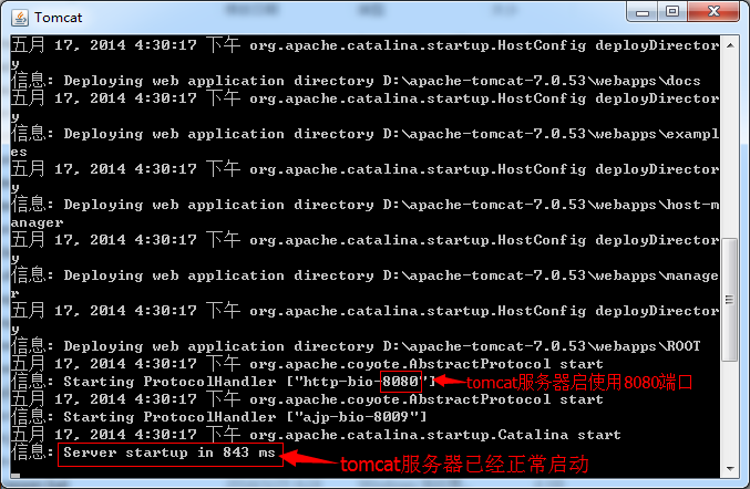 打开catalina.2014-05-17.log文件,看看里面的日志记录信息,