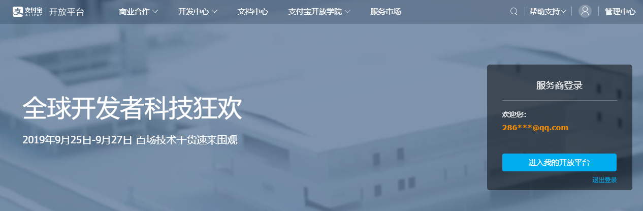 1.2.1使用企业支付宝账号登录 支付宝开放平台。