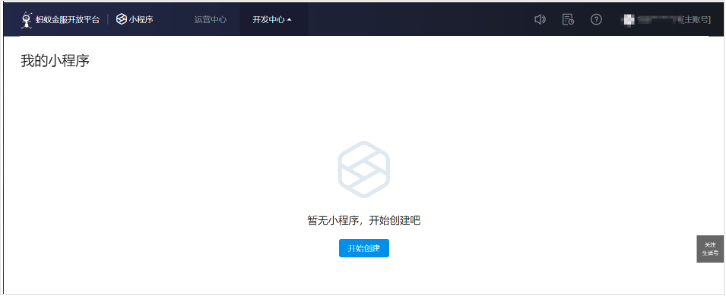 若账号从未创建过小程序,点击开始创建,填写小程序相关信息,完成创建流程。