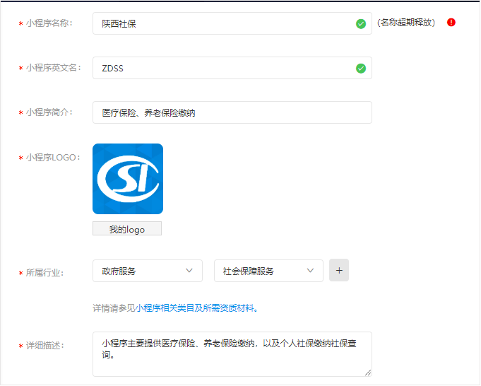 准确填写小程序的基本信息,基本信息需符合小程序审核规范 。
