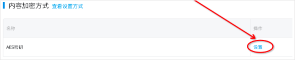 进入小程序详情页>开发设置> 内容加密方式,首次设置可以看到设置按钮(若已设置则为查看按钮),经过核身校验后可以查看AES设置页面(该密钥由支付宝开放平台生成,开发者仅需要将密钥配置到你的系统中即可)。