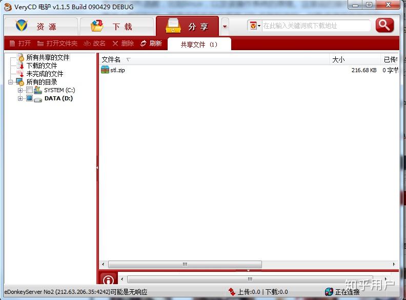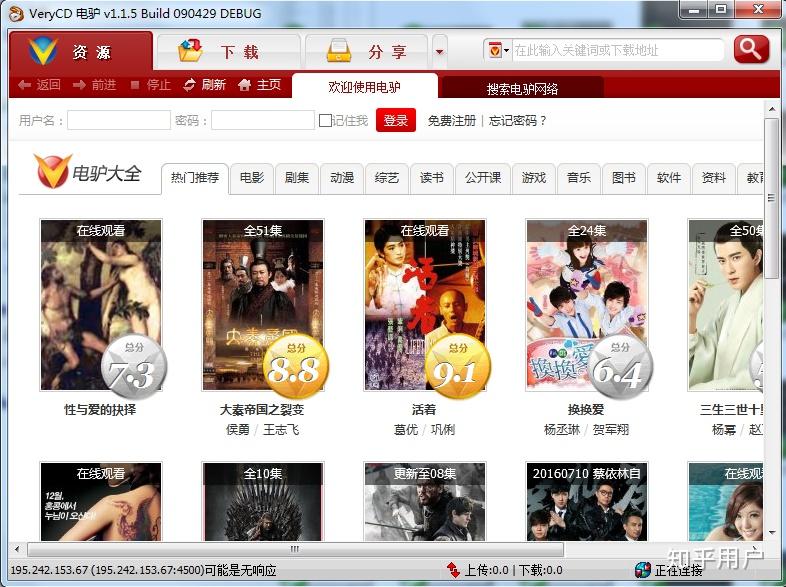 C++语言本身熟练使用程度前面也介绍了单纯的 C++ 您啥也干不了,您必须结合一个具体的操作系统平台,所以您得熟悉某个操作系统平台的 API 函数,比如linux,以及该操作系统的原理。这里说的操作系统的原理不局限于您在操作系统原理图书上看的知识,而是实实在在与系统 API 关联起来的,如熟练使用各种进程与线程函数、多线程资源同步函数、文件操作函数、系统时间函数、窗口自绘与操作函数(这点针对Windows)、内存分配与管理函数、PE 或 ELF 文件的编译、链接原理等等。网络通信,网络通信在这里具体一点就是socket编程。这里的socket编程不仅要求熟练使用各种网络 API 函数,还要求理解和灵活运用像三次握手四次挥手等各种基础网络通信协议与原理。关于 socket 编程实践,《TCP/IP网络编程》这本书是非常好的入门教材。TCP/IP 网络编程:说了这么多,您可能会觉得很抽象。笔者在这里举个具体例子,假设我们现在要开发一个类似电驴这样的软件。软件界面如下图: