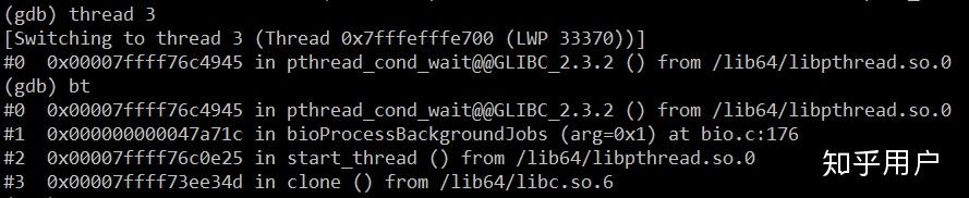 接着挨个使用 thread + 线程编号 和 bt 命令去查看每个线程的上下文调用堆栈: