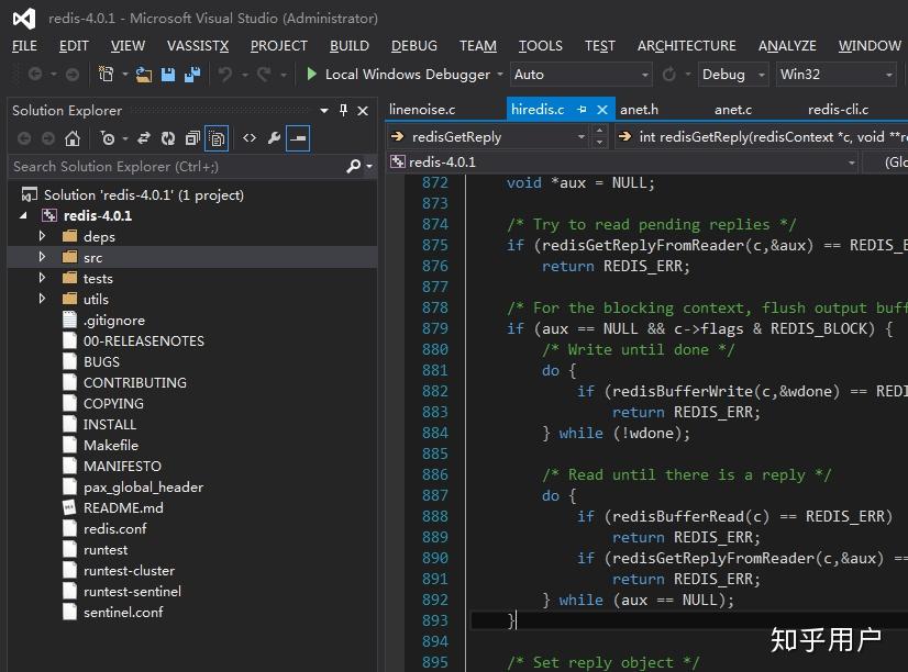 这里我以学习 redis 为例,将 redis 源码从官网下载下来以后,使用您喜欢的代码阅读器管理起来,我这里使用的是Visual Studio,如下图所示: