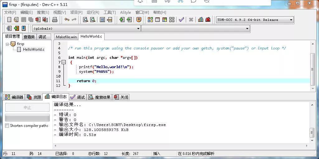 如果你不喜欢 VS 的庞大性,那么可以使用 Dev C++。