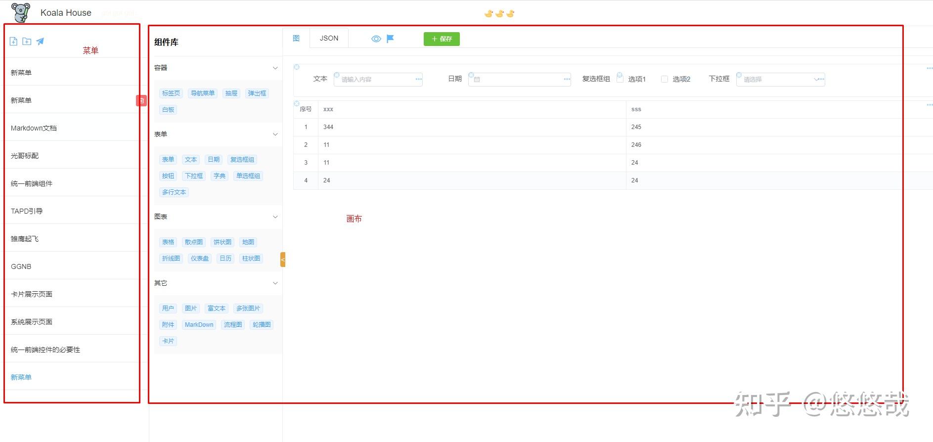 灵活的布局。使用的标准文档流,可拖拽调整位置,可以嵌入样式。分为Container和Node两种类型,支持无限层级嵌套,支持全局容器(弹出框、抽屉)组件之间的交互可以通过嵌入代码的形式,也可以通过拓扑图的形式组件扩展的问题已经想明白了,只是还没时间实施。反向生成Vue代码已经有了,就用的模板字符串。后面就是拖拽出一个简单的标准页面,看是否能实现【增删改查】功能,然后不断查漏补缺,是一个不断修正和完善的过程。