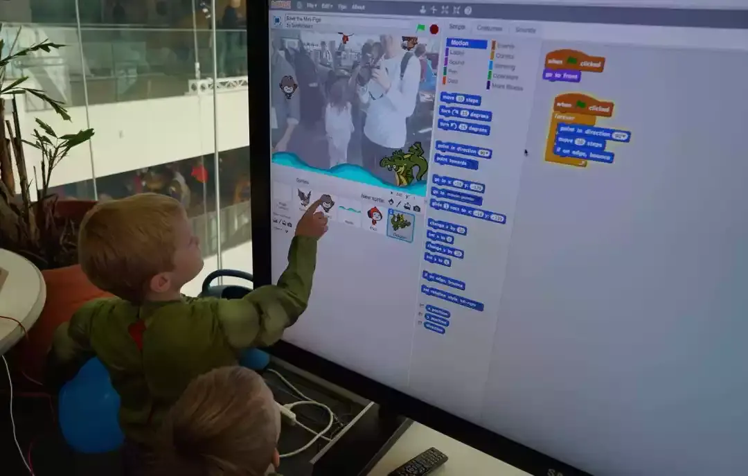 儿子用Scratch编码,把代码块像乐高积木一样拼在一起
