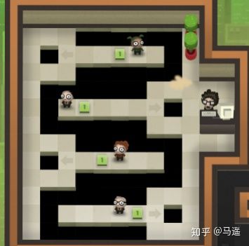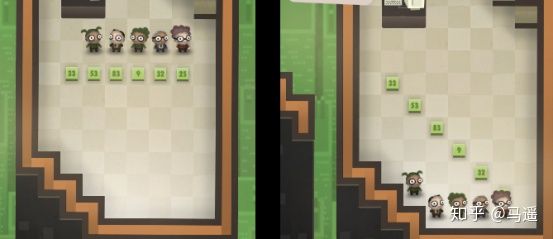 左边红框的妹子刚粉碎完盒子,要往右走,但是被右边蓝框的大叔卡住位置了,走不过去。