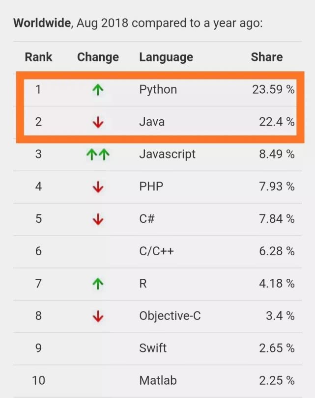 PYPL 2018年7月编程语言排行榜