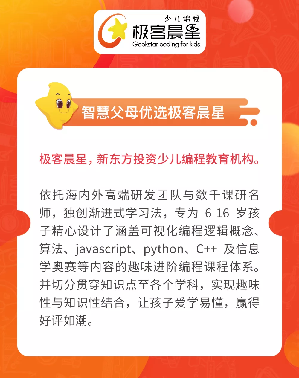 比赛的举办时间和大赛详情每年都会有变化,建议家长收藏本文,随时关注公众号“极客晨星”,并在临近比赛的期间详询赛事官网。