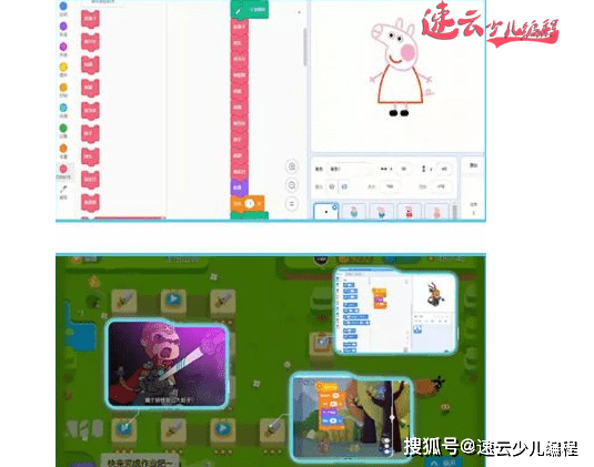 现在很多热门软件和游戏,虽然它们本身不是Scratch开发的,但同样可以⽤Scratch还原出来,实现相同的效果。