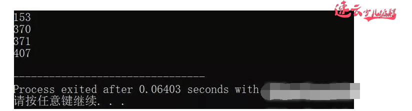 比如说刚才随手编了一个水仙花数的程序,程序的题目是这样的。所谓"水仙花数"是指一个三位数,其各位数字立方和等于该数本身。例如:153是一个"水仙花数",因为153=1的三次方+5的三次方+3的三次方。
