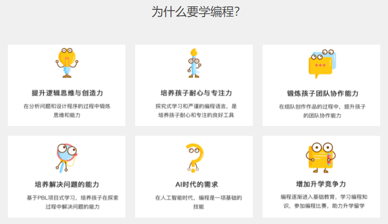 注:以下内容部分来自网络节选,仅供参考!其实每个行业的存在都有它的必要性,同样的,少儿编程的存在和不断发展肯定也是因为存在必要的市场需求。特别是在“双减”政策下,少儿编程被划分到素质教育的行列,孩子是可以学少儿编程的,现在的少儿编程课里面包含了许多可以锻炼孩子逻辑思维能力以及其他综合素质能力的内容,只是家长们要正确定位自己孩子的年龄段和教育需求,根据自身的实际需求选择不同类型的课程。