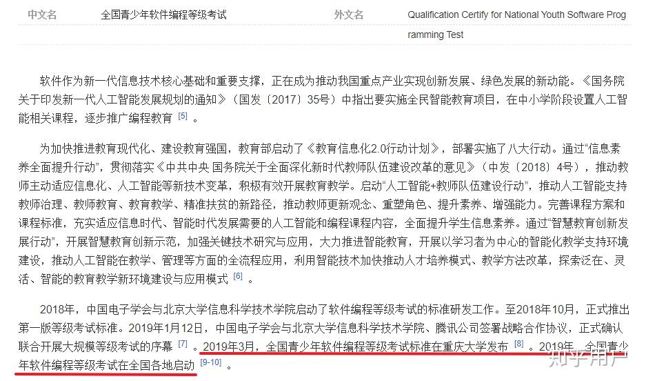 电子学会《青少年软件编程等级标准》于2019年发布,目前根据该标准推出的考试有全国青少年软件编程等级考试(http://www.qceit.org.cn/bos/default.html)。