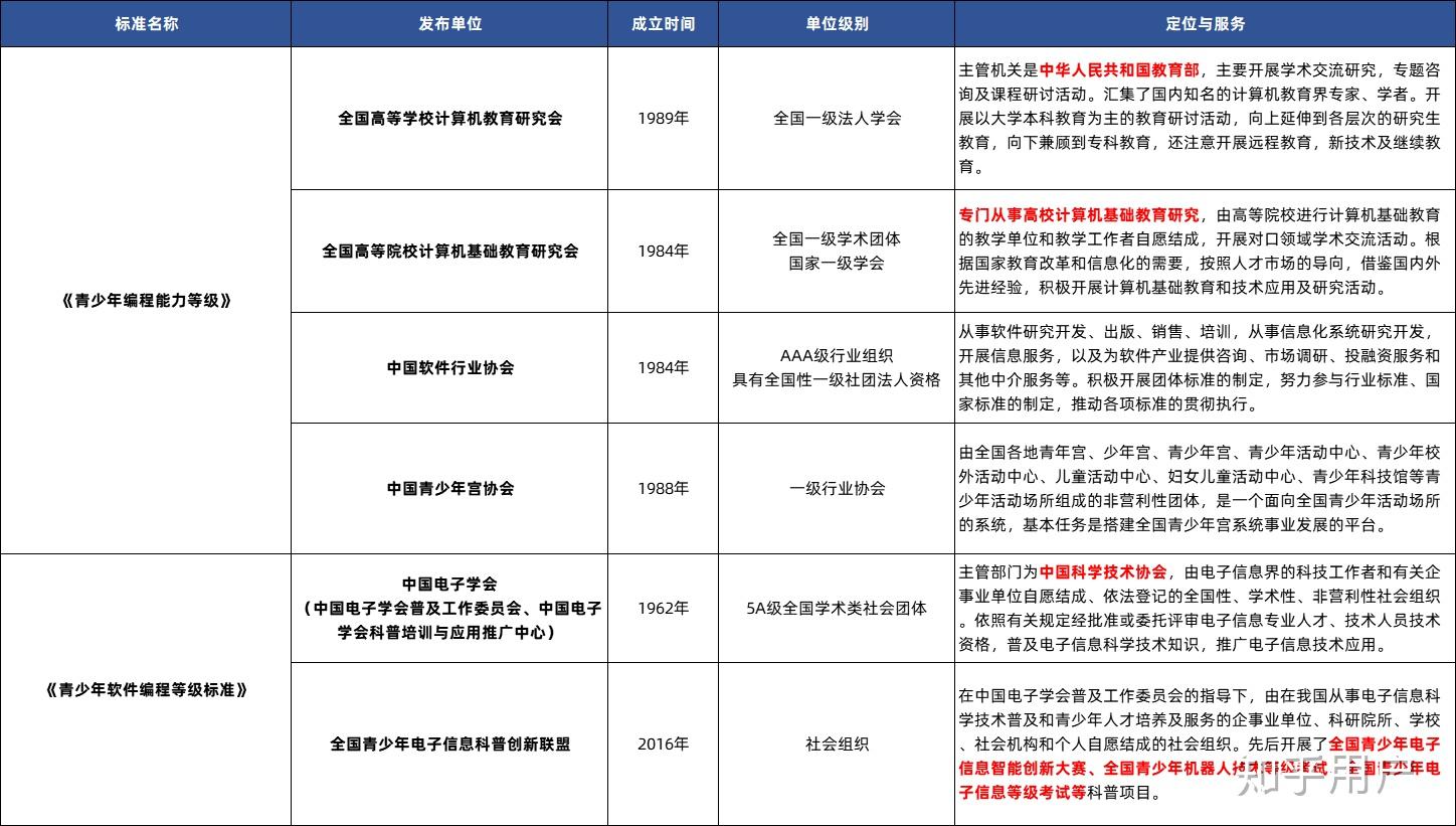 总的来说,两个标准文件背后的发布单位在业内均有专业背景,在权威性专业性上,两者都是过关的,其中CELTSC《青少年编程能力等级》标准发布单位属于计算机基础教育研究背景, 电子学会《青少年软件编程等级标准》发布单位属于电子信息技术研究背景。