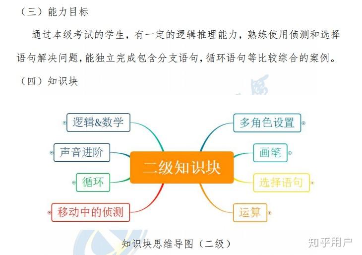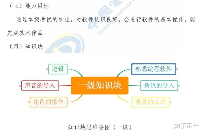 电子学会《青少年软件编程等级标准》中对图形化编程的能力要求说明如下,核心特点是按知识点划分等级,重点强调每一等级所需掌握的知识块,强调熟练掌握编程技能: