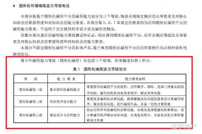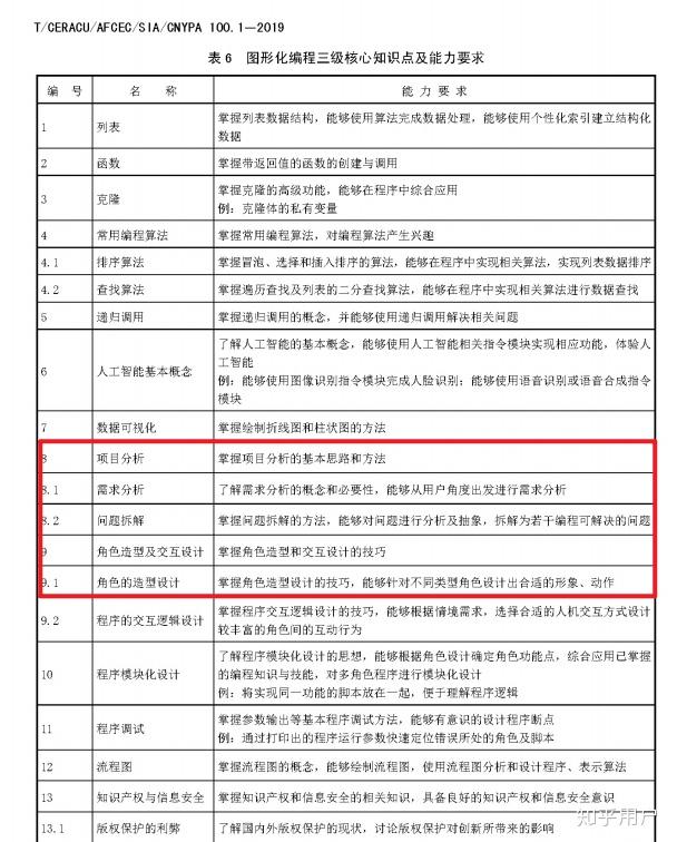 (CELTSC《青少年编程能力等级》标准内容截图)