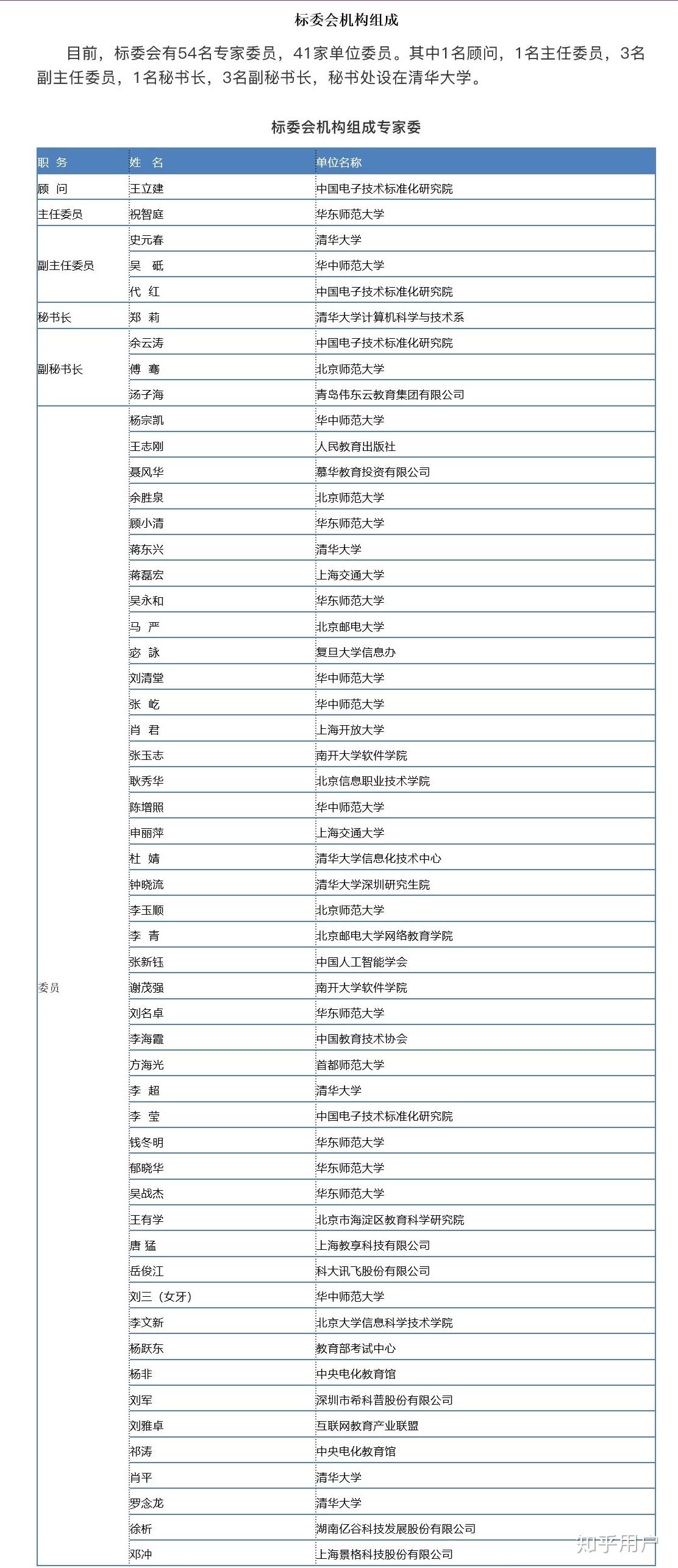 目前,全国信息技术标准化技术委员会教育技术分技术委员会(以下简称CELTSC)设有54名专家委员,41家单位委员,秘书处设在清华大学。(资料来自网络,仅供参考)
