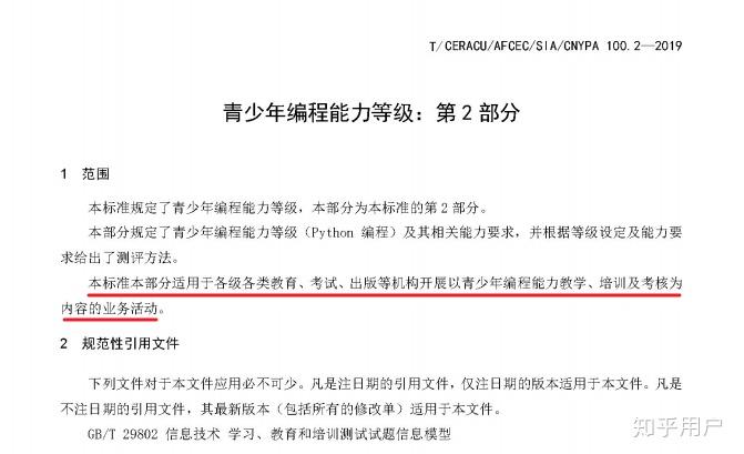 普适性CELTSC《青少年编程能力等级》标准适用范围说明如下: “本标准本部分适用于各级各类教育、考试、出版等机构开展以青少年编程能力教学、培训及考核为内容的业务活动。”