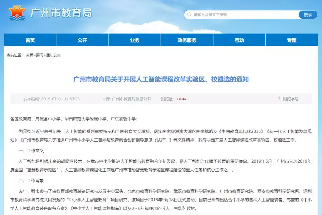 今年7月,广州和北京相继宣布要将人工智能教育纳入中小学教育体系。