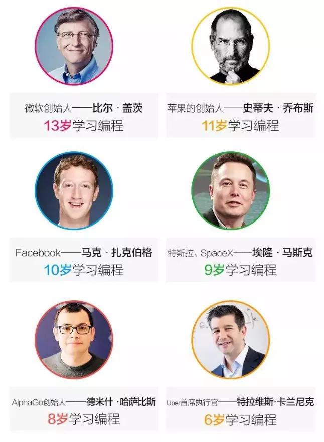 如果不是从小就学习编程,我们很难想象是否还会有现在的比尔盖茨、乔布斯、扎克伯格!然而,今时还不同往日,编程的普及程度早已远远超过了过去。